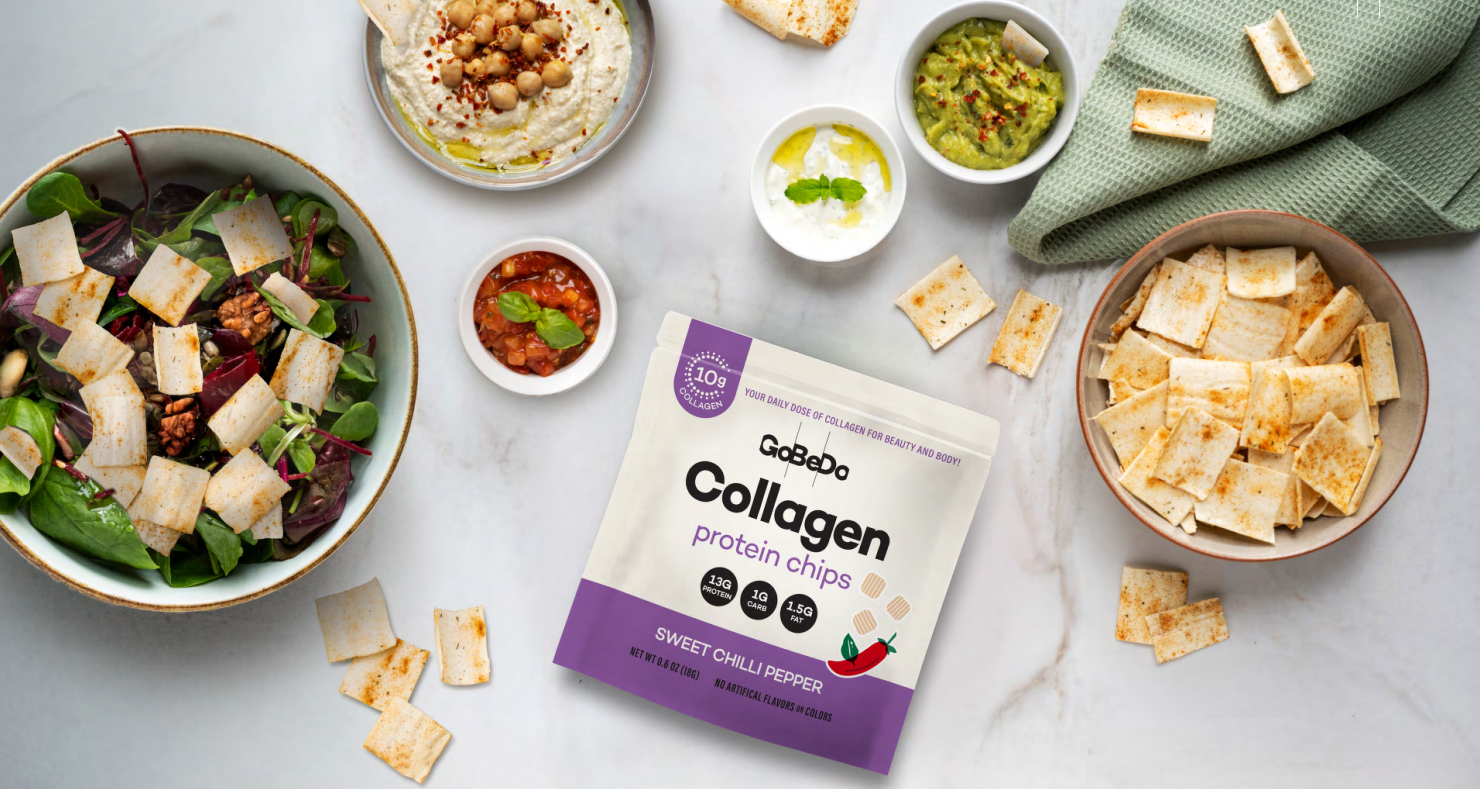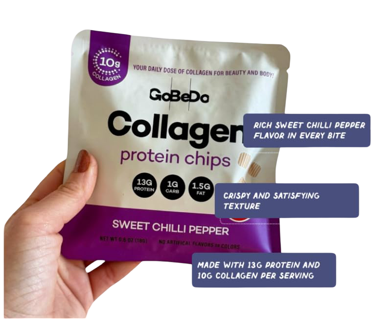 GoBeDo is a delicious form of collagen as both a healthy crunchy snack or salad topper. Excited to replace one of many supplement powders from my routine with these protein chips.
