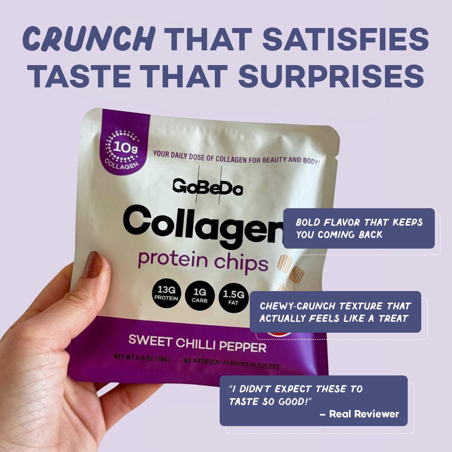 GoBeDo is a delicious form of collagen as both a healthy crunchy snack or salad topper. Excited to replace one of many supplement powders from my routine with these protein chips.
